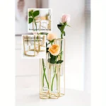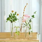 Test tube vase with 5 test tubes, gold vase for centerpiece, gold vase with metal stand, glass vase for wedding home decor.